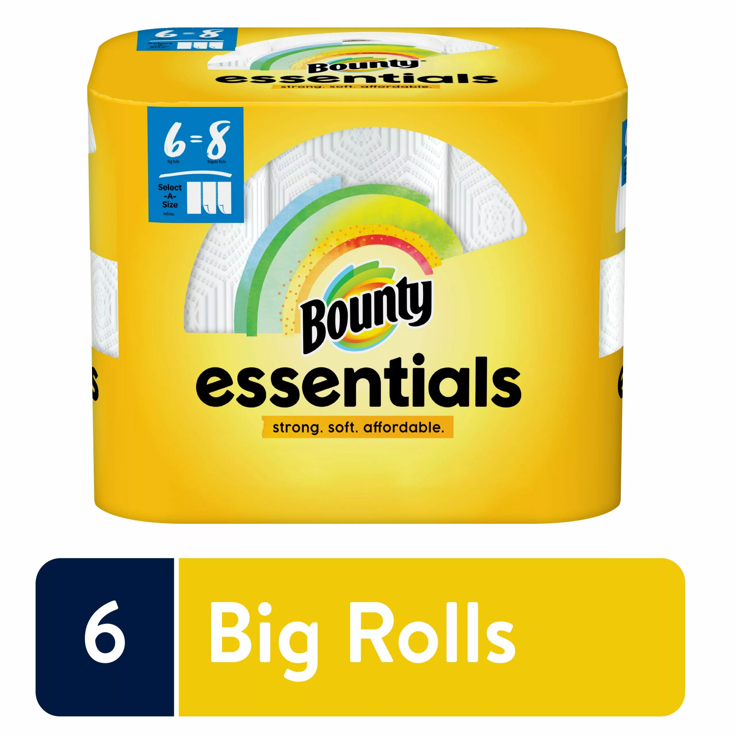 - Pack contains 6 big rolls of white essentials select-A-size paper towels