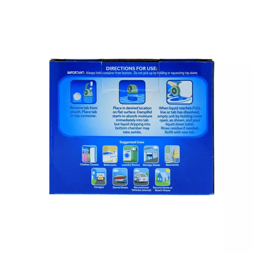 DampRid Drop-in Tab Refill Pack contains two 15.8 oz. moisture absorber tabs. When paired with the Drop-In Starter Kit, they attract and trap excess moisture and eliminate musty odors. Two 15.8 oz. single-use refill tabs provide optimal convenience with no mess. To use, simply insert an unwrapped tab into the top of the moisture absorbing container. Each tab lasts up to 60 days depending on temperature and humidity. DampRid absorbs moisture without use of electricity or batteries. Blends in with any home decor and can be used discretely in various locations. Place in bathrooms, basements, utility rooms, garages, laundry rooms or storage lockers. Ideal for use as a closet freshener for clothes, this simple home improvement project creates cleaner, fresher air. Keep out of reach of children. Read and follow all label directions.