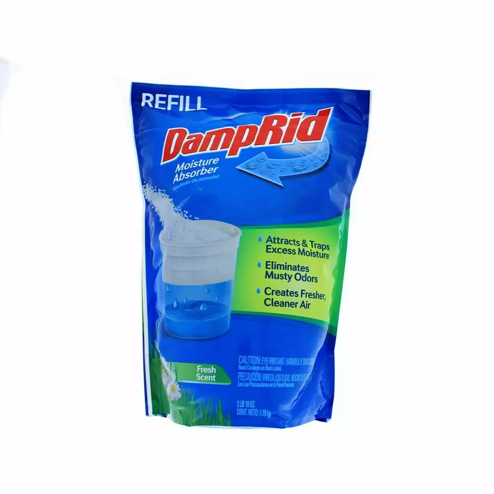 - DampRid Refill Bag is a convenient, cost-effective way to replenish 10.5 oz. Refillable Moisture Absorber cups