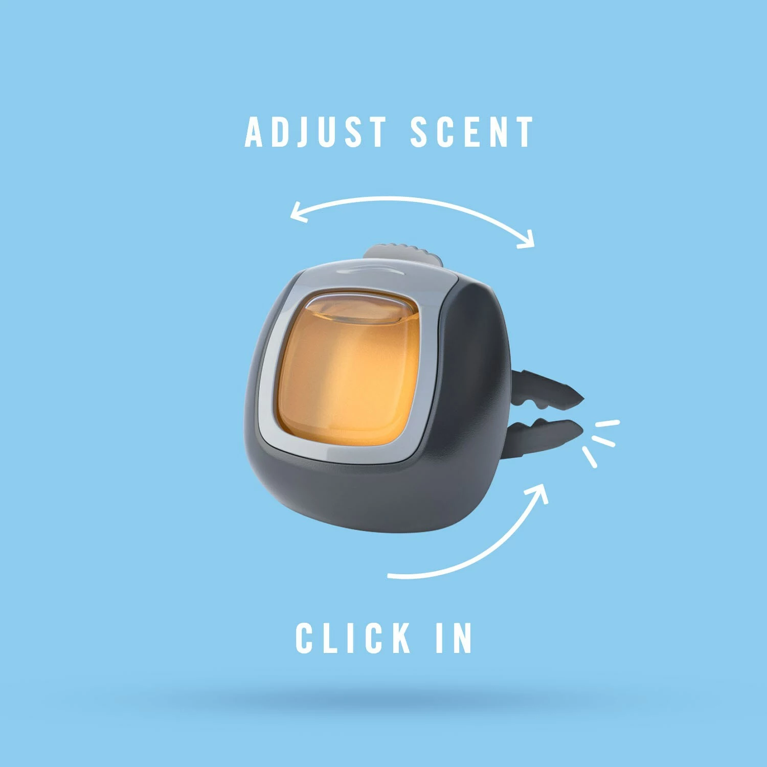 Car smelly passengers and fast food bags… you can take them out of your car, but their odors still chase you around town. Kick ’em to the curb with car vent clips, and eliminate odors trapped in your car, minivan, or ice cream truck. These tiny car vent air fresheners have incredible odor blockers and odor eliminators that remove all those stinks and smells built up from your longest, commute-est days. Simply push the vent clip firmly until you hear it click to activate fragrance, then clip onto your car vent and drive stink-free for a whole 30 days. So, freshen up your ride and breathe happy, no matter where the road takes you. Cleans away vehicle odors with odor clear technology so they’re gone for good. Simply attach this car air freshener to the air vent to begin cleaning your car of odors and slowly release a light, fresh scent for up to 30 days. The scent dial puts you in the driver’s seat, allowing you to select the perfect amount of freshness for you and your passengers. Don’t give odors a ride. Eliminate them with car vent clips.