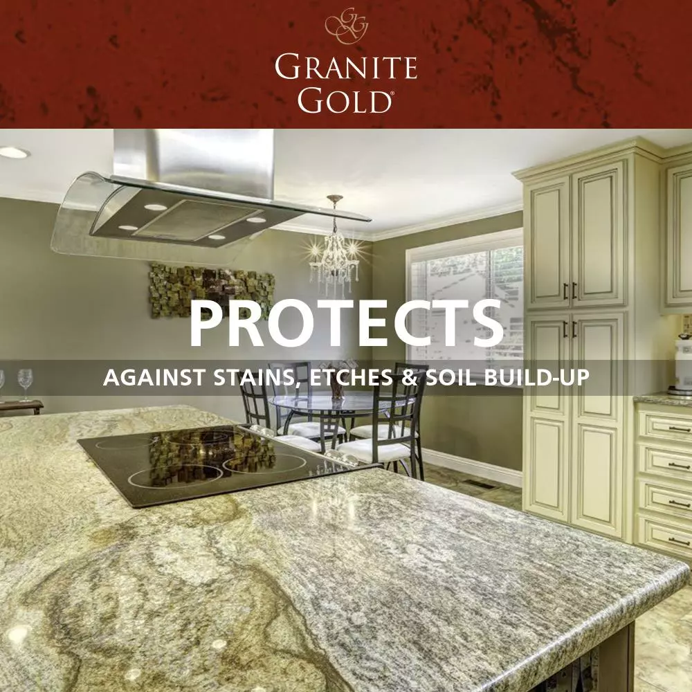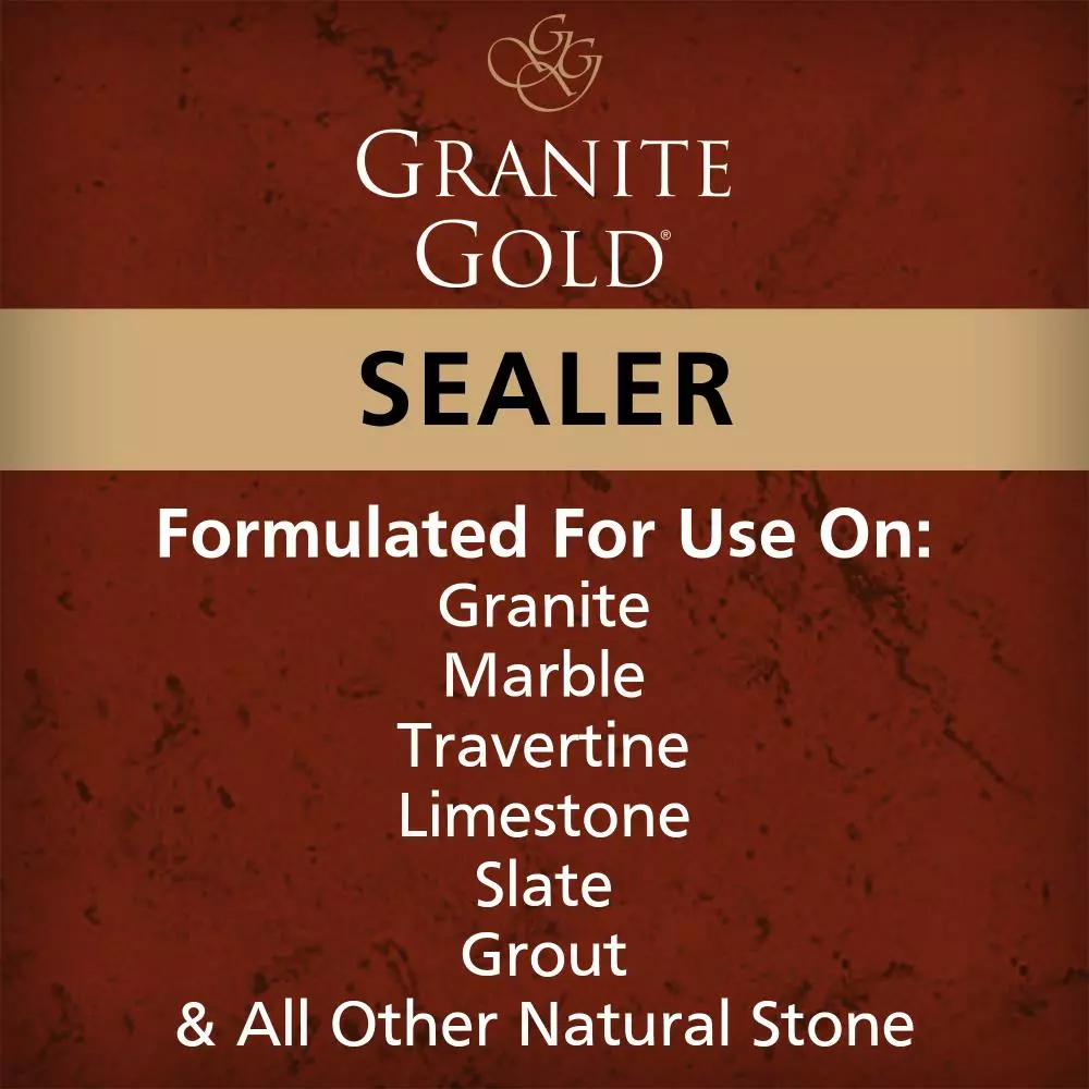 Sealing granite countertops and other natural-stone surfaces is made simple with Granite Gold Sealer® – our easy-to-apply spray-and-wipe stone sealer that creates a barrier to protect all natural stone. Frequent use of the water-based stone sealer maintains maximum surface protection against staining, etching and soil build-up. Regularly check the integrity of the seal with an at-home water test. Pour water (about 3 inches in diameter) on the surface in several locations and let it sit for 30 minutes. If you see a dark mark or ring, the water is penetrating the stone and it’s time to reseal.