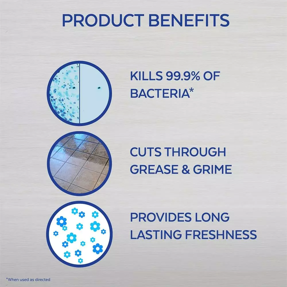 This versatile all-purpose cleaner cleans, disinfects, deodorizes and kills 99.9% of bacteria, when used as directed. Works great on surfaces like fiberglass, linoleum, plastic and stainless steel.