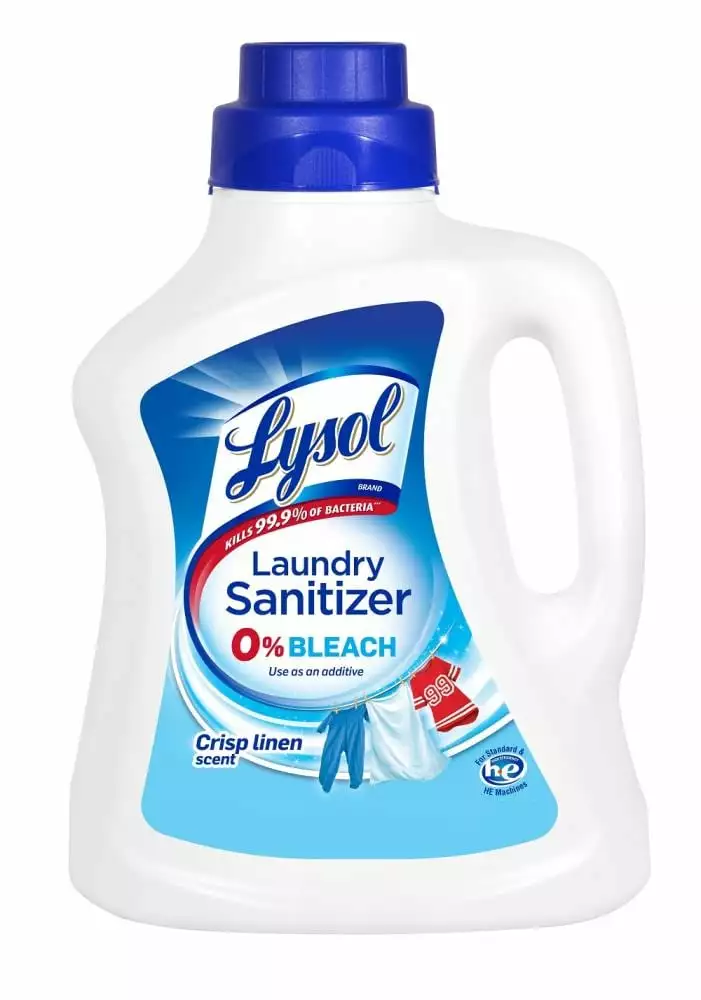 Our clothes are in constant contact with bacteria throughout our day-to-day activities, for example through contact with contaminated surfaces, other people and our own bodies. Bacteria can spread from one fabric to another in the laundry basket, from the washing-machine drum to the next load. Some of these bacteria can survive following the wash cycle. When it comes to certain laundry loads such as children’s clothes or sportswear, you want to eliminate bacteria that may cause illnesses and create lingering bad smells. But detergents alone don’t actually kill all bacteria. Introducing Lysol laundry sanitizer, an additive specially designed to kill 99.9% of bacteria in laundry (when used as directed). Simply add Lysol laundry sanitizer to your rinse cycle. It does not contain any chlorine bleach and even works in cold water so is safe to use on most fabrics including whites, colors and darks.