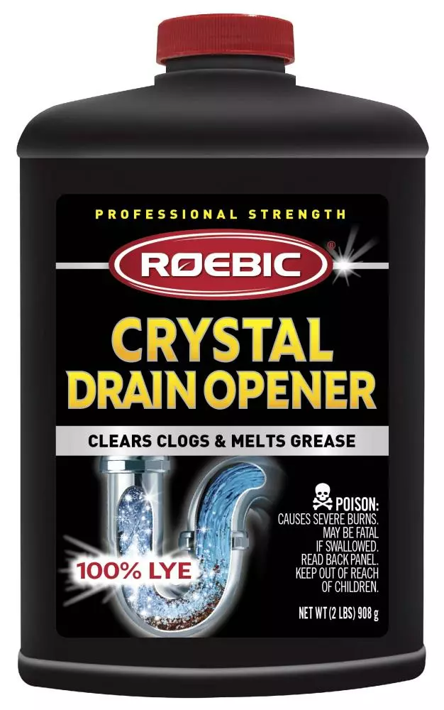 Crystal drain opener contains 100% sodium hydroxide also known as caustic soda or lye.