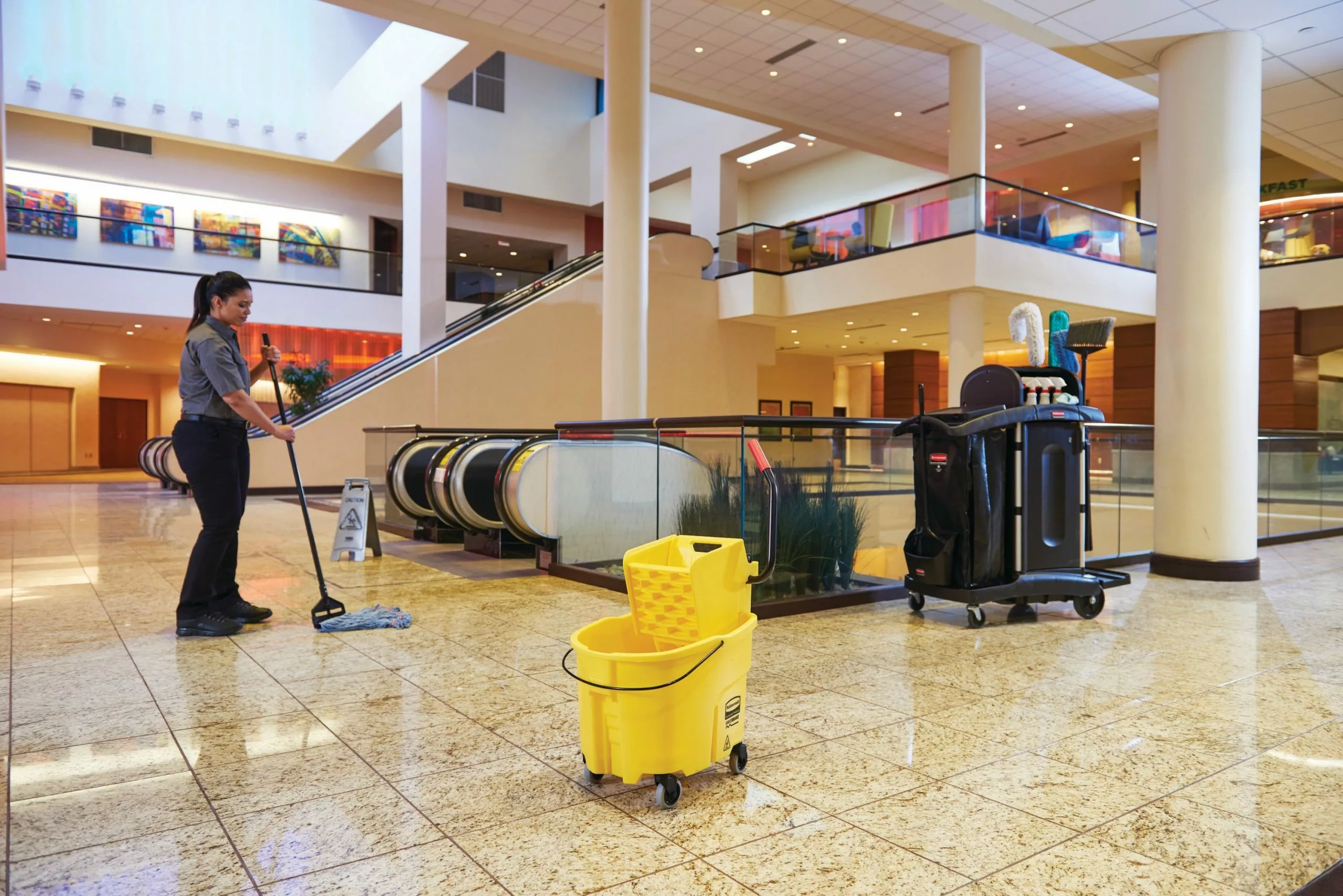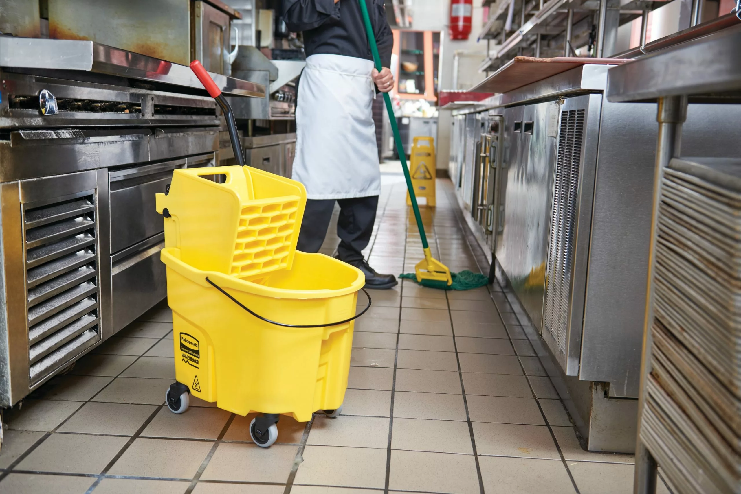 The WaveBrake® 35-qt mop bucket and wringer system reduces splashing, which means a safer environment, cleaner floors, and improved productivity. Premium tubular steel and structural web-molded plastic.