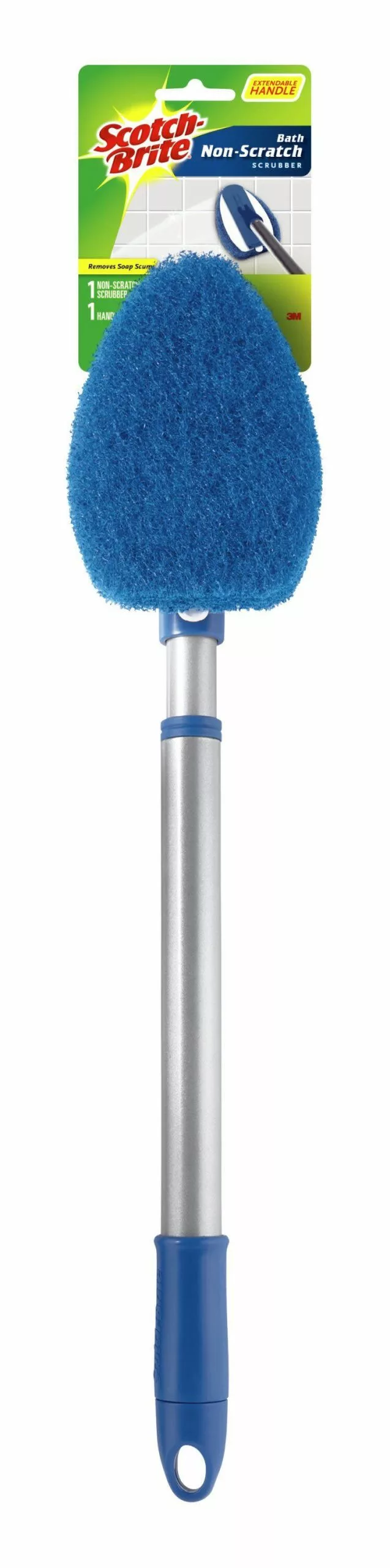 Scotch-Brite® Shower Scrubber removes hard water spots and soap scum without chemicals. The long handle allows you to better reach all areas of your shower and tub. Refills are available for the handle in both the Soap Scum Eraser and a Non-Scratch Scrubber.