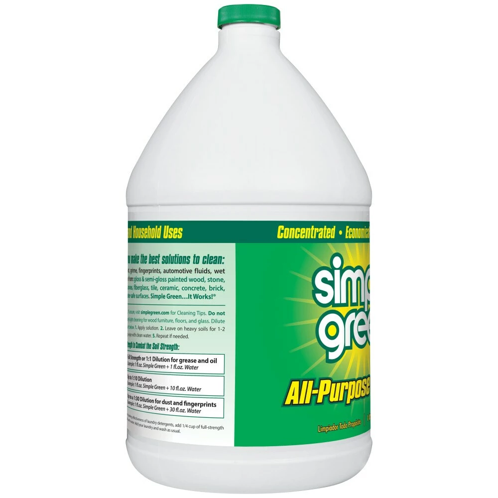 Simple Green All-Purpose Cleaner is a powerful cleaner and degreaser designed for effective and environmentally safer use on all washable surfaces. The biodegradable formula easily removes tough dirt and grime without chemicals that can harm people and the environment. The concentrated formula provides up to 30 times the cleaning value. Use it full-strength for heavy messes or easily dilute it with water for daily cleaning. Removes built-up dirt, grease, food spills, ink, pet stains and other tough grime indoors and out. For use on floors, carpets, walls, countertops, appliances, furniture, fabric, tools and more, this versatile all-purpose cleaner can easily replace a cupboard full of harsh cleaners, detergents, degreasers and laundry pre-soaks, making clean-up simple and safer. This formula is readily biodegradable per OECD 301D. It’s backed by our 100% money-back guarantee.