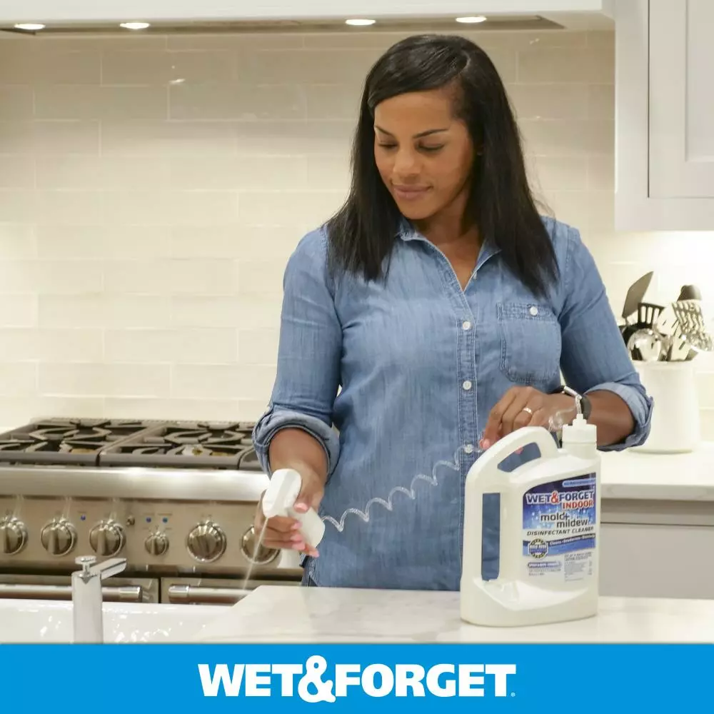 Wet and Forget Indoor Kills the Virus (SARS-Related Coronavirus 2) that causes COVID-19 on hard, non-porous, non-food surfaces. Effective against SARS-Related Coronavirus 2 SARS-CoV-2 in 3 minutes on hard, non-porous, non-food surfaces. Wet and Forget Indoor kills 99.9% of bacteria and viruses. Disinfect hard non-porous surfaces with Wet and Forget Indoor. Clean, disinfect and deodorize surfaces in one step. Wet and Forget Indoor doesn’t contain bleach or have any harsh fumes. As a disinfectant, Wet and Forget Indoor Mold + Mildew Disinfectant Cleaner kills: Pseudomonas aeruginosa, Salmonella enterica, Serratia marcescens, Human Coronavirus, lnfluenza Virus Type A/Hong Kong, SARS Associated Coronavirus cause of Severe Acute Respiratory Syndrome, SARS-Related Coronavirus 2 SARS-CoV-2 cause of COVID-19, Vaccinia (Pox Virus), Norwalk Virus (Norovirus), Rotavirus. Proven spot treatment soft surface sanitizer against Staphylococcus aureus and Enterobacter aerogenes.