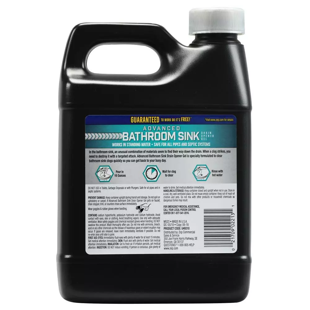 Zep Drain Cleaners Advanced Bathroom Sink Drain Opener Gel 32-oz Drain Cleaner